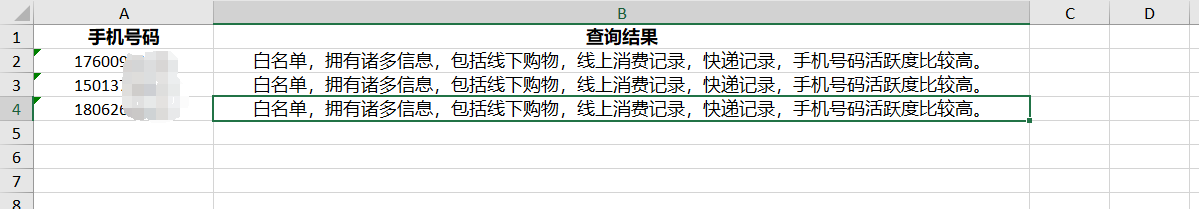 白名單,表示擁有諸多信息,包括線下購物,線上消費記錄,快遞記錄,手機號碼活躍度較高。