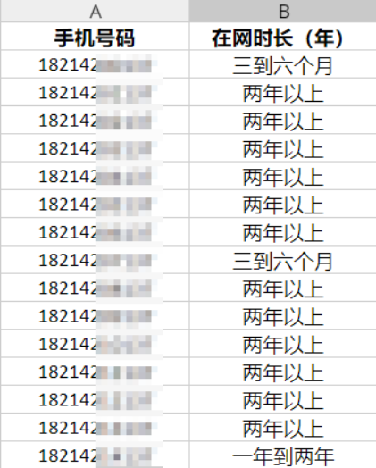 手機號使用時長查詢是指通過輸入已實名的手機號碼,查詢該手機號的在網時長,查詢結果以時間區間的形式返回。能