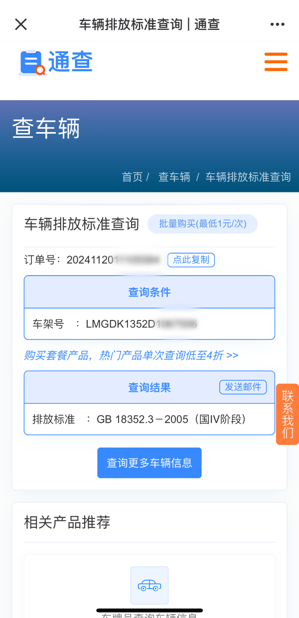 如果您需要查詢多輛車的排放標準,可以選擇平臺上此產品的批量產品,價格更加優惠。