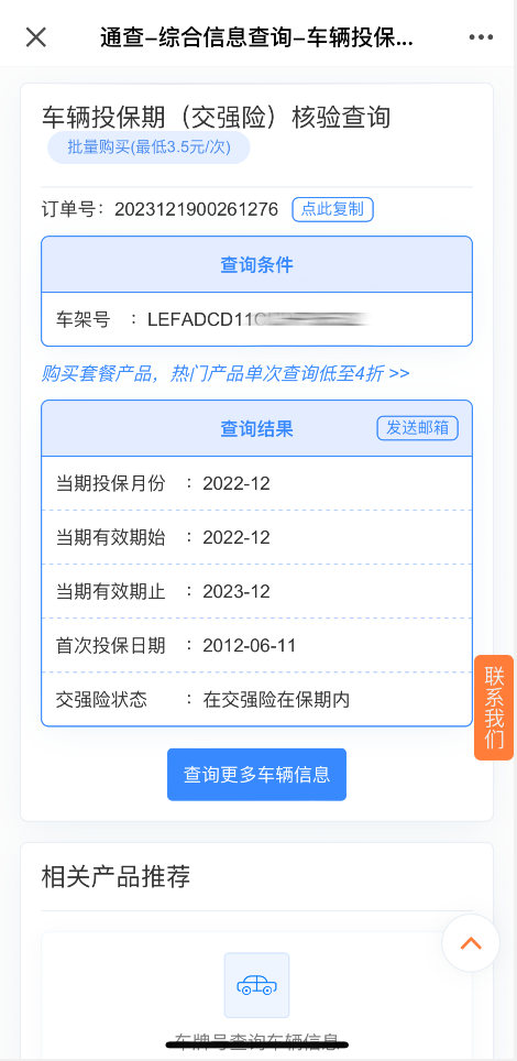不查詢,只專注于車架號對應的車輛交強險投保期信息。