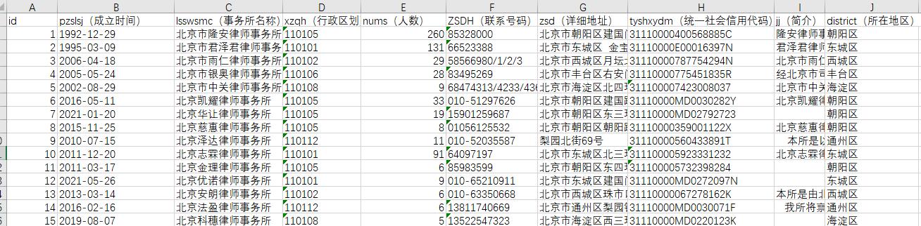 返回結果:該數據為全國律師事務所,律師基本信息,數據包含:律師事務所表id,所屬律師事務所,律所成立時間,律所名稱,律所地址,律所統一社會代碼,律所人數,律所地區,行政區劃,業務類型,姓名,從事時長,職業證號,頭像等,數據格式為SQL,XLSX,CSV